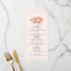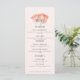 These simple 4” x 9” wedding menus feature a single coral watercolor poppy The menu includes placeholders for two appetizers, two entrees and two desserts. Add the couple’s names along with your wedding website to create your own QR code on the back.