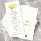 These simple 4” x 9” wedding menus feature a single butternut yellow watercolor poppy. The menu includes placeholders for two appetizers, two entrees and two desserts. Add the couple’s names along with your wedding website to create your own QR code on the back.