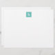 These classic, modern and chic customisable notecards feature a personalised monogram on an aqua blue square. Part of a collection from Parcel Studios.