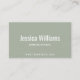 Project a polished and nature-inspired brand image with this clean, two-sided business card design featuring a sophisticated sage green color block. The front is dedicated to the essential name and title in crisp white text against the solid green background. The back offers a contrasting split layout with a vertical sage sidebar, clearly organizing all contact details like email and social handles on the white side in a highly readable, modern, and eco-chic format.