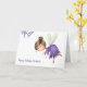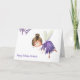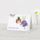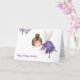 Say happy birthday in a special way with this personalised birthday card with an illustration of a fairy flying. She is wearing a purple dress and all the card is made with purple tones. Illustrated and designed by Patricia Alvarez.