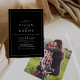 This minimalist dark black photo on the back wedding invitation is perfect for a simple wedding. The modern romantic design features classic black and white typography paired with a rustic yet elegant calligraphy with vintage hand lettered style. Customisable in any colour. Keep the design simple and elegant, as is, or personalise it by adding your own graphics and artwork. Personalise the back with your favourite engagement photo and your names.