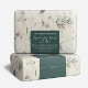 A product label for soap featuring a dark green background and white text. Customise it with your business name, ingredients, and product information. Please note that how this label fits on your soap will depend on the dimensions of your soap bar.