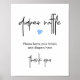 A minimalist sign with a tiny blue heart motif and an informal modern font for a modern baby boy shower. Matching raffle tickets to send out to guests are also available in this collection.
