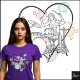 Structure: Female drummer framed by a heart outline and pastel abstract shapes.