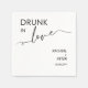 Black and White Minimalist 'Drunk In Love' Funny Personalised Cocktail Napkins for Wedding Engagement Party | White Wedding Napkins with Bride and Broom Names and Date
