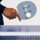 Modern Dusty Blue and White Monogrammed Script Name Ping Pong Paddle - To customise the background, monogram, and name colours click the "Personalise this template" button and then click the "Edit Using the Design Tool."