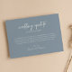 Minimalist Dusty Blue Wedding Update Downsize Announcement. The word 'wedding update' is not editable. Send this announcement card to uninvite your guest to your wedding.