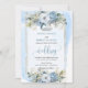 Ideal for formal, modern, or rustic-chic weddings, this dusty blue and gold floral invitation pairs perfectly with matching stationery, RSVP cards, menus, and signage for a cohesive event design.
