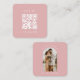 Modern, trendy RSVP enclosure cards, featuring custom arch shaped photo, dusty pink background, text & QR code. Easily add your details by clicking on the "personalise this template" option.