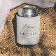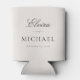 Minimalist Editorial Script Names Wedding Favor Can Cooler