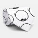 A black and white, minimalist design which has a guitar lead in a circle around an electric guitar.