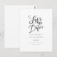 MInimalist elegant script black and white save the date announcement postcard with love heart. Add your special announcement details in a classic text.