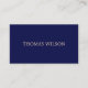 Minimalist fully customisable business card template. Elegant design with dark blue background and bold fonts. Perfect networking card for any professions.