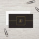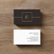 Elegant fully customisable business card template. Modern design with dark grey background, bold monogram, faux golden lines.