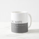 An elegant, modern and minimalist half grey / half white mug, with three lines of text...