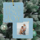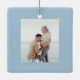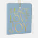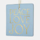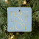 Modern simple minimal typography Peace Love Joy custom couple photo faux gold and light baby blue Christmas ornament with your custom personalised name or text.