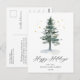 Minimalist Elegant Pine Tree Christmas Greeting Postcard.