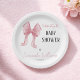 Minimalist Elegant Pink Bow Girl Baby Shower Paper Plate