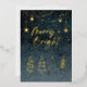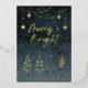 Watercolor Sky Merry Bright Elegant Script Pine Trees Christmas Personalised Foil Holiday Card | Unique Watercolor Custom Merry Christmas Cards |