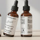 Upgrade your packaging with this minimalist cosmetic bottle label (3.75" x 2"), featuring modern script fonts and a sleek black-and-white design. Perfect for 2 oz / 60ml Cosmo bottles (and can work for 1 oz / 30ml—just check sizing). Ideal for face oils, serums, soaps, and more. Fully editable text and colours to fit your brand.