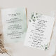 This minimalist eucalyptus wedding itinerary card is perfect to compliment your rustic wedding. The design features watercolor green eucalyptus foliage.