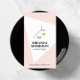 This modern and edgy business card design features a hand-drawn, minimalistic illustration of a woman's face with a faux gold cheek accent and closed lashes. Set on a pastel pink background with a colour-blocked triangle behind the logo to create intrigue. This double-sided card allows ample room on the backside for your contact info and social media. Original art and design © 1201AM Design Studio