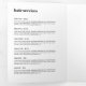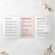 This modern and sophisticated tri-fold brochure features a hand-drawn, minimalistic illustration of a woman's face to help brand your business. Set on pastel pink with a white colour-blocked area holding your name or business name and title. Update the customisable text to fit your brand, and personalise the details throughout the brochure for your own usage. These 5x7 brochures are the perfect size to display your price lists and menu of services, or describe your product line. Perfect for salons, makeup artists, lash extensions, beauty products, cosmetics and more. A great marketing piece to hand out to potential clients to quickly introduce your business. Please contact the designer for help with special typesetting or layout variations. © 1201AM Design Studio | www.1201am.com