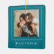 Minimalist Feliz Navidad Teal Christmas Photo Ceramic Ornament