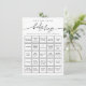 Find the Guest Baby Bingo shower activity card featuring a minimalistic design with calligraphy. Customise with your questions if desired.