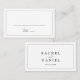 This minimalist flat wedding place card is perfect for a simple wedding reception. The modern romantic design features classic black and white typography paired with a rustic yet elegant calligraphy with vintage hand lettered style. Customisable in any colour. Keep the design simple and elegant, as is, or personalise it by adding your own graphics and artwork. Personalise the back of the place cards with the names of the bride and groom and the date. Purchase in bulk and hand write the guest names and table numbers on the printed cards when they arrive.