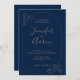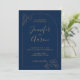 Minimalist Floral Arch Wedding Invitation in Navy Blue and gold.
