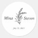 The Minimalist Floral Black and White Wedding Classic Round Sticker features a sleek black and white floral design, perfect for adding a touch of modern elegance to wedding favours, invitations, and decor.