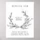 Minimalist black and white floral line art mimosa bar sign poster with elegant botanical design. Editable via Template Objects in the Zazzle editor.