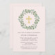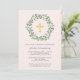 This simple Baptism or Christening invitation features a trendy wreath of abundant watercolor green leaves and a few tiny berries on a soft, blush pink background. This simple, feminine style is perfect for your elegant, minimalist Baptism celebration.