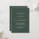 Set the tone for a timeless and sophisticated celebration with this Minimalist Forest Green Wedding Invitation, designed with clean serif typography and refined script accents. The deep, muted green background gives a luxurious yet modern feel—perfect for couples planning an elegant, classic, botanical, rustic chic, or modern wedding.