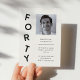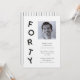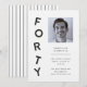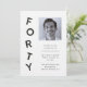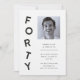 A 40th birthday party invitation with modern, minimalist, black-and-white design. This simple design features the typography "forty" stacked on top of each other in a playful way. Customisable in any colour. Add a photo of the birthday man.