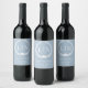 Minimalist Frosted Blue Monogram Initials Wine Label