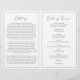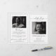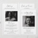 Funeral memorial program featuring on the front a photo of the deceased, thier name, dates, the memorial venue, date of the event, and elegant frame. On the inside is an obituary, and order of service; and on the back another photo, a thank you note and the second venue for after the funeral.