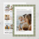 Elegant and modern Year in Review Christmas card featuring a classic green gingham border and clean family photo collage design. The front includes space for your family name, year, and holiday greeting in modern minimalist typography. The back features 12 photo slots (one for each month) with room for short updates in a matching clean font. A timeless and personalised holiday card that makes the perfect keepsake for sharing your family’s story this Christmas.