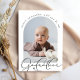 Modern, minimalist Will You Be My Godmother Photo Proposal card features single photo and typography script ''godmother'' in trendy handwritten lettering. Perfect for asking your best friend or family to be a Godmother.