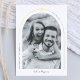 This wedding save the date card is perfect for modern couples who want something timeless, elegant, and effortless. The clean white background, delicate gold arch frame, and simple little ribbon create a soft, romantic look that feels both classic and on-trend.