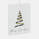 Minimalist Gold Black Tree Merry Christmas is in a stylish set handwritten style and an artsy illustration of a simple ribbon-like Christmas tree.