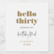 Minimalist gold and black typography personalised wine bottle label on simple white background. Customise age, name, drink name, short text, and birth year. Perfect for birthday present or party.