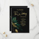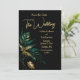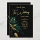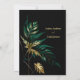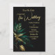 This wedding card features an elegant, minimalist design with a black background and gold text, creating a sophisticated and formal aesthetic. The script and serif fonts are used in a balanced composition, giving it a modern yet classic feel. The bottom left corner is adorned with botanical illustrations in shades of green and gold, adding a touch of nature and luxury to the overall design. The layout is clean and organised, ensuring that the important details of the wedding are clearly communicated. Personalise the card with your names and details of the wedding. You can download the card to your mobile device or computer. Card was created with the help of ai.