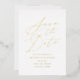 Announce your upcoming wedding in style with our Minimalist Calligraphy photo save the dates. The elegant save the date cards feature the words "Save the Date" in a gold foil script with your names, wedding date, & location featured below. The back of the save the dates features your favourite engagement photo.