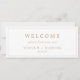 This minimalist gold font hanging seating chart welcome header is perfect for a simple wedding. The modern romantic design features classic gold and white typography. Customisable in any colour. Keep the design simple and elegant, as is, or personalise it by adding your own graphics and artwork. The card prints on the front and back (double-sided). Please check the collection for the coordinating table number seating chart cards.