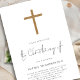 Minimalist Gold Glitter Cross Photo Christening Invitation