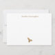 Minimalist white flat note card with your name and leaf spray in gold colour.
