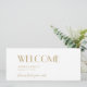 This minimalist gold modern art deco wedding seating chart header presents both an elegant, black tie formal, and a casual, simple design for a traditional or more rustic marriage celebration. The plain, neutral gold and white layout with unique, classic typography alludes to minimal boho or classy retro making it a perfect design for any event theme. Use this header welcome sign with your creative seating chart layout to help your guests find their seats.